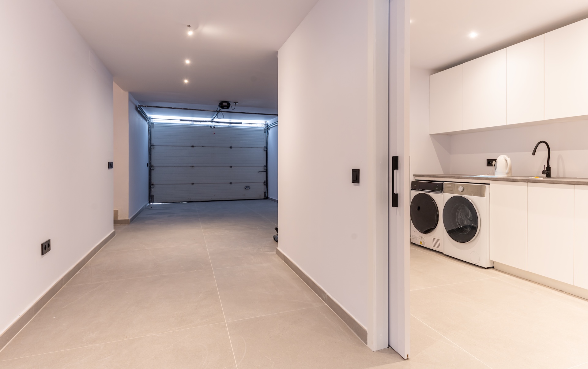 Eine großzügige Einfahrt führt zu einer sicheren Tiefgarage und einem vielseitig nutzbaren, natürlich beleuchteten Untergeschoss – perfekt geeignet für ein Fitnessstudio, Heimkino, einen Entertainmentbereich oder Weinkeller. Ideal für Familien und alle, die gerne Gäste empfangen.